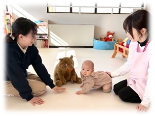 発達に応じた手作りおもちゃなどで楽しく遊びます。